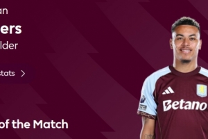 本场比赛上半场维拉球员罗杰斯打进远射世界波,赛后他也当选英超官方球迷票选全场最佳球员。