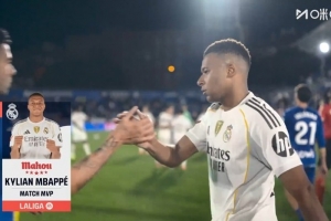打进制胜球!姆巴佩当选皇马1-0赫塔费全场最佳球员