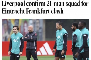 利物浦官方公布了此役大名单,共21名球员在列,球队于当地时间周二晚启程。赫拉芬贝赫因脚踝伤势缺阵,远藤航回归。