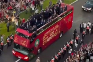 体育资讯10月23日讯 在夺得U20世青赛冠军后,摩洛哥队回国进行了夺冠大巴巡游。
