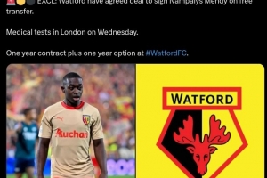 体育资讯8月26日讯 据知名转会专家罗马诺报道,沃特福德已经同意引进自由球员南帕里斯-门迪,球员将在周三前往伦敦完成体检,沃特福德将与其签约一年,并有延长一年选项。
