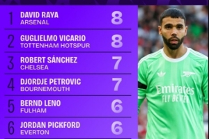 体育资讯8月28日讯 本赛季英超已经进行两轮比赛,阿森纳的拉亚和热刺的维卡里奥以8次并列扑救榜榜首,而且两人把守的球门迄今为止还未丢球。