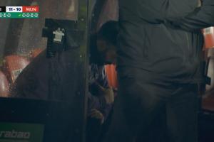 点球大战进行中时,镜头一度给到阿莫林,阿莫林在曼联第12罚时坐在教练席上,他低着头没有看向场上。