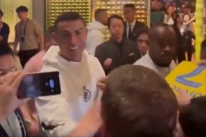 体育资讯8月18日讯 在沙特超级杯开赛前夕,正在中国香港随利雅得胜利队备战的C罗,意外与葡萄牙著名主持人若昂-拜昂相遇。这一幕迅速在社交媒体上引发热议。