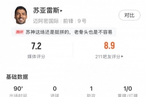 体育资讯8月28日讯 联盟杯半决赛,迈阿密国际3-1逆转奥兰多城晋级决赛,苏亚雷斯出战90分钟贡献1次助攻,获评7.2分。