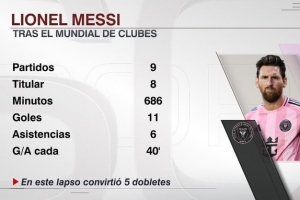 ESPN统计表明,自世俱杯之后,梅西参加9场比赛,其中8次首发,出场时间686分钟,打进11球,送出6个助攻,平均每40分钟造1球。