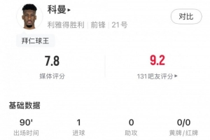 体育资讯8月30日讯 沙特联首轮,利雅得胜利客场5-0击败布赖代合作,新援科曼此役首发出战,打进1球,球员本场具体数据如下: