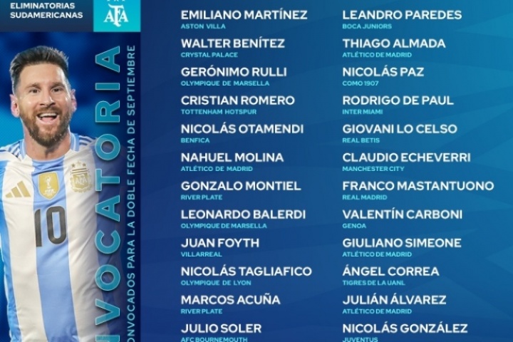 体育资讯08月18日讯 阿根廷公布新一期名单,梅西领衔,劳塔罗、麦卡利斯特在列,帕斯、马斯坦托诺入选。
