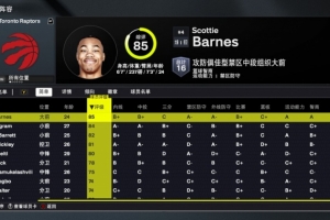 体育资讯8月30日讯 今日NBA 2K26正式发布,猛龙队球员能力值如下: