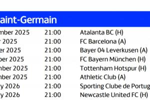 体育资讯08月30日讯 欧足联官方公布欧冠联赛阶段赛程,巴黎首战亚特兰大,第二轮客战巴萨,第五轮对阵拜仁!