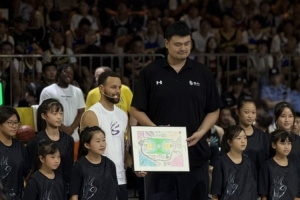联合启动公益计划!库里品牌中国行继续进行 姚明现身活动现场